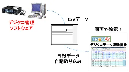 - ※上記以外の他社機器やデジタコ管理ソフトウェアの場合は、連動データの整合性調整が可能か調査が必要となります。その場合は別途費用が必要となります。